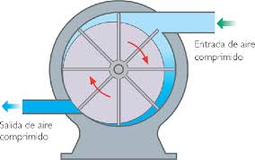 Dispone de un elemento que realiza un movimiento giratorio. Aunque existen varios modelos, los más utilizados son los compresores rotativos de paletas, que constan de un eje sobre el que se dispone un conjunto de paletas; entre las paredes del compresor y las paletas se crean unas pequeñas cámaras que van disminuyendo de volumen al girar y, en consecuencia, aumentando la presión del aire contenido en su interior.